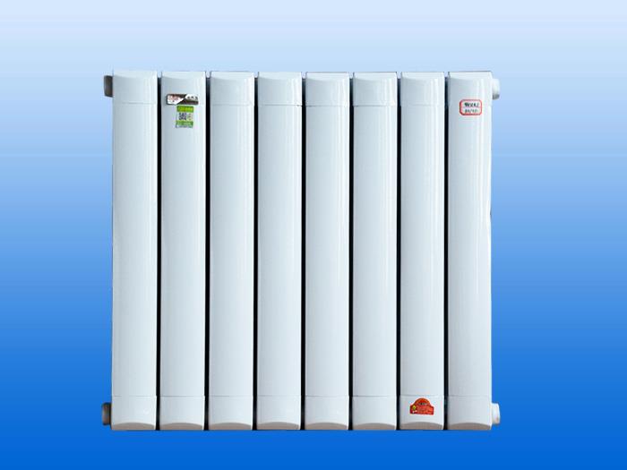 將鋁型材與銅管高壓膨脹使其緊密結合,若幹柱拚裝焊接、兩側裝配功能性裝飾件,形成板式散熱器,其外形與鋼製板式散熱器相仿。結構緊湊、外形美觀、便於清潔、重量輕承壓高、散熱效果好(輻射、對流)、耐久性好。